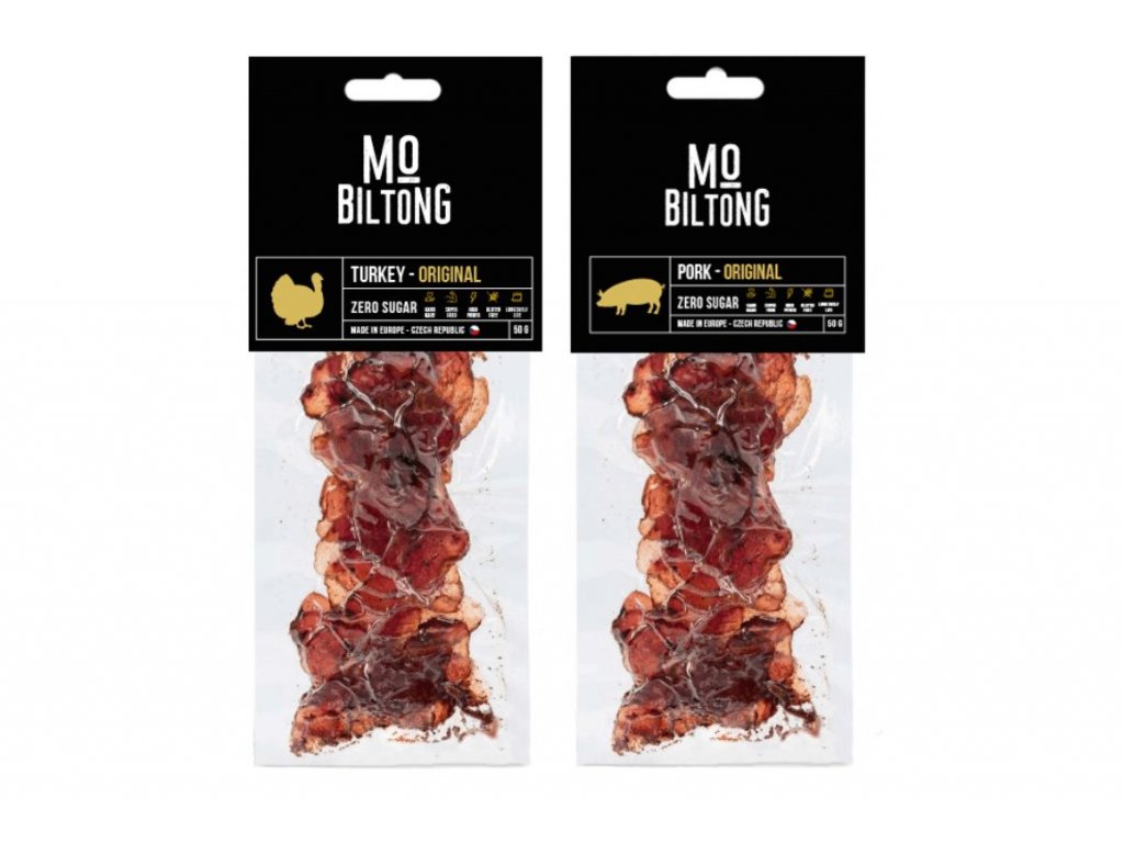 - typ: vepřový + krůtí biltong Original (bez cukru)