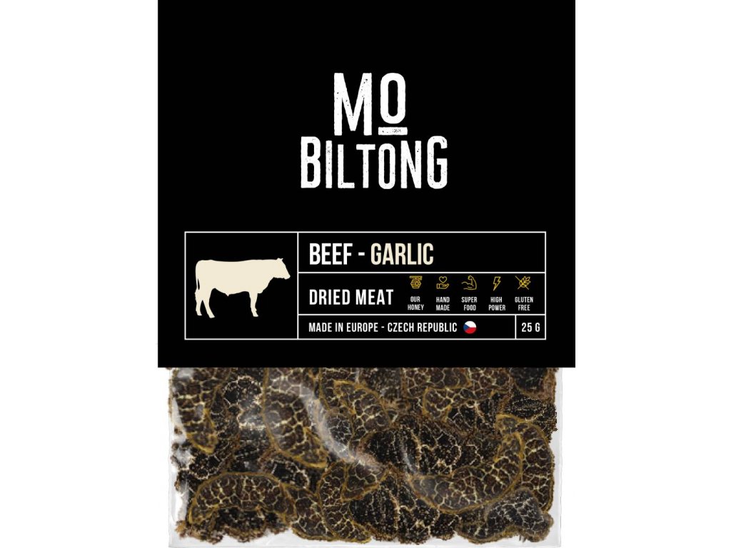 Už jste vyzkoušeli naši novou specialitu? Chuť česneku poskytuje kořeněný nádech spojený s jemnou sladkostí medu, která nechá vyniknou přirozenou chuť masa. Silnější kousky nabízí nezapomenutelnou texturu biltongu. Upíři pozor!