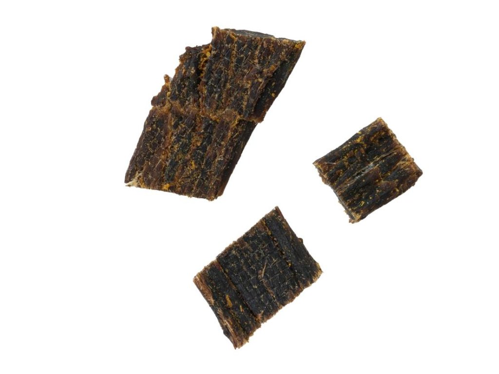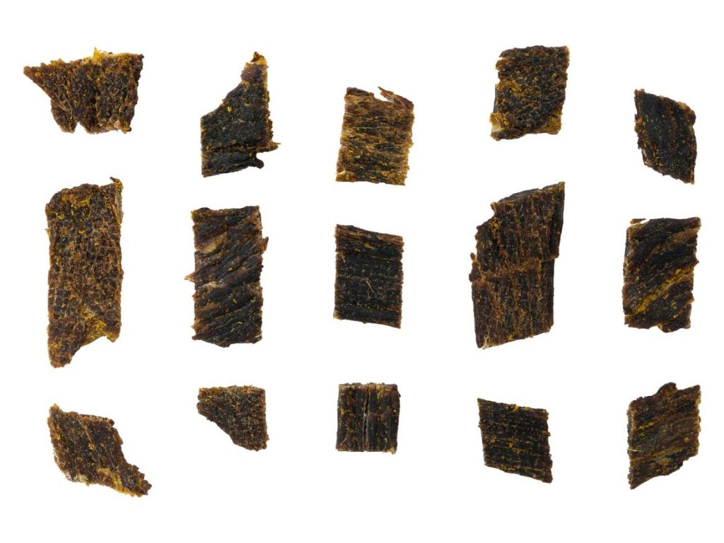 Jeden 30 g balíček sušeného hovězího masa je vyroben ze 105 g masa syrového.
